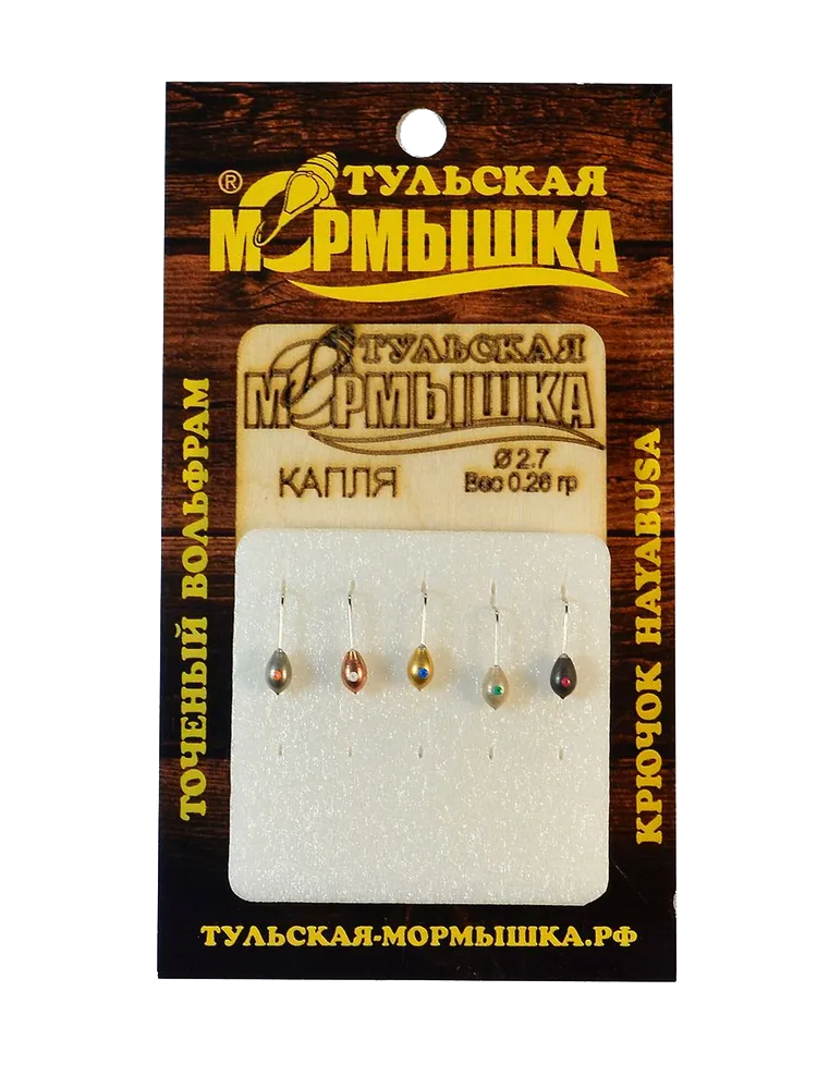 Тульские мормышки имеют пять цветов (гальванических покрытий) – никель, медь, золото, белое и черное серебро. Высококачественные японские крючки и хороший вылет гарантируют практически 100% засекаемость при поклевке.